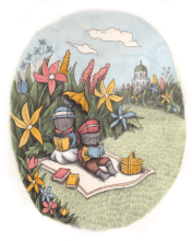 What a lovely illustration! I am imagining the titles of the little bugs’ books, and wondering what delicacies are in their picnic basket! Thank you for the inspiration!
