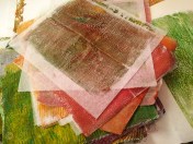I have been illustrating my books with pulp painting for over 25 years. While I love paper making, I felt it was time for a change for several reasons. The small company where I bought my pulp had changed hands and the new pulp was causing me problems. The board I used for stencils was no longer available. I had tried substitutes but none worked as well for detail and some were difficult to cut. Then, there were the hours of standing bent over the paper vat which was affecting my health. These were all a part of my decision to experiment with new techniques.