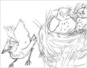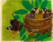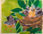 I love this. Denise Fleming reinventing herself. She is a picture book icon. How wonderful. The new book looks lovely. It excites me even more right now, as I just spent two weeks watching robins on a nest by our house, and we now have another nest with mama robin warming her eggs while papa sits watch on the neighboring rooftop.