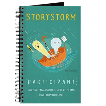 In the meantime, head over to STORYSTORM SWAG CENTRAL to pick up your official journal. All proceeds from sales ($4 per item) will be donated to children’s hunger charity Blessings in a Backpack. There are mugs and shirts, too!