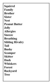 Here’s one: Squirrel loves peanut butter and jelly sandwiches, but his brother is allergic so he can’t eat them. Ever!