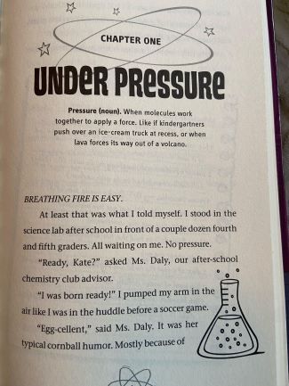 This isn’t something that you must reserve only for nonfiction. You can also use supplementary material in fiction as well. In the KATE THE CHEMIST middle grade series, Author Kate Biberdorf and I included a chemistry definition at the start of each chapter.