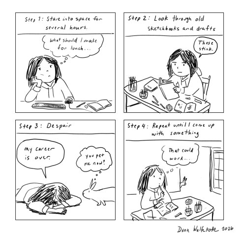 As I wrap up revisions on my current project, I’m starting to think about what my next one will be. Maybe it’ll be something that’s been sitting in my sketchbook for years, or maybe I’ll come up with something entirely new. Either way, I’m going to embrace the process and try to skip Step 3 this time around. Hopefully you all will do the same!