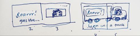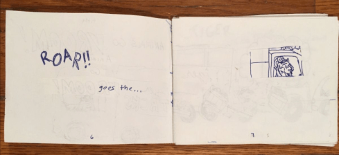 For ANIMALS GO VROOM!, I started with a few thumbnail drawings.