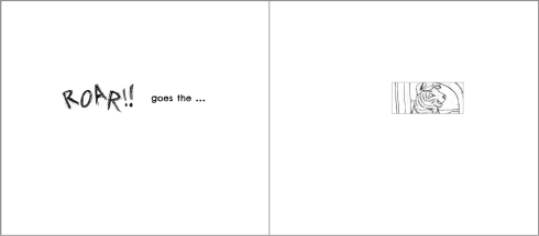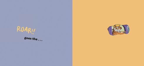 When I worked on the final art with Jim Hoover, the art director at Viking, we played around with different shapes for the die-cuts. I added a little wiggle room around the sound words and animal faces in the die-cut shapes to allow for any discrepancies in the cutting process. Once we got proofs back from the printer, we only needed to adjust the spacing and measurements on a couple of die-cuts. Here are the final tiger spreads: