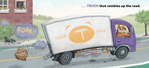 For example, in ANIMALS GO VROOM!, I combined two evergreen topics in a fresh way: animal sounds + transportation. I had thought about how words like Roar, Honk, or Screech could be used for both an animal sound and a vehicle sound, and how it might be fun to make a book where the reader had to guess who or what was making the sound. Die-cut holes that peeked through to the next spread and offered clues seemed like a fun, but intentional way to use a novelty element.