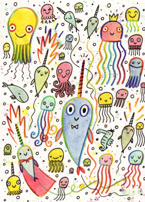 Jelly, who is a bit of a worrier and skeptic, wasn’t so sure about this new approach for a narwhal story, but that night I came up with three stories (“Narwhal,” “Narwhal’s BEST WEEKEND EVER,” and “Narwhal’s Pod of Awesomeness”) and made quick storyboards and even a mock-up. By the next day I had several more book ideas featuring Narwhal and Jelly. And then a flood of new story ideas by the day after that.