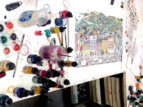 You are on the clock during your morning commute. Four lanes of Hondas and Subarus jockeying for the exit lane may not be the ideal setting for turning illustration or story ideas over in your head, but the creative mind never clocks out. Just be careful not to drive off the highway into a ditch especially when your last phone transmission is a text to yourself that reads “bunny has a potluck but everyone brings cups.”