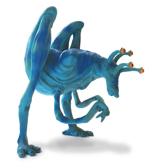 I created a number of sketches for the alien and when one was picked I sketched the final scene. I then sculpted the character and built his props; the easel, canvas and box of paints he uses. Another artist built the landscape and a sky backdrop was rented.