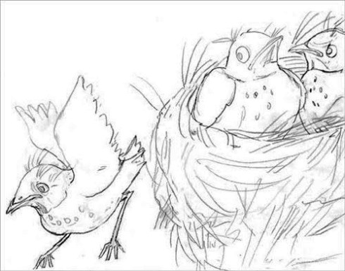 With the new style I am able to create more detail in the illustrations. Printing the background and collaging the foreground gives the feeling of more depth. I also am able to make papers with the textures of feathers and grasses which enhances the art and adds a feel of realism.