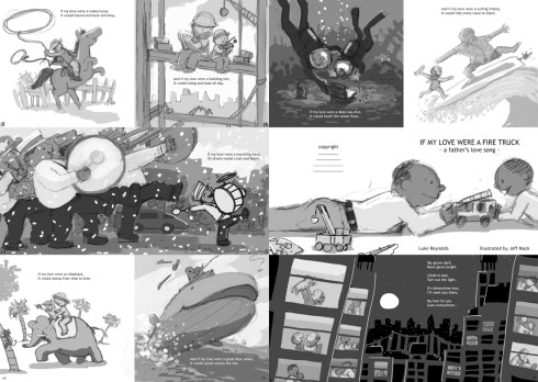One thing I learned from Linda’s examples was that it was helpful to paginate my limited-text story. Not only did paginating my story allow me to better visualize each spread, but it pushed me to establish the necessary pacing of the story and provide compelling page turns as well.