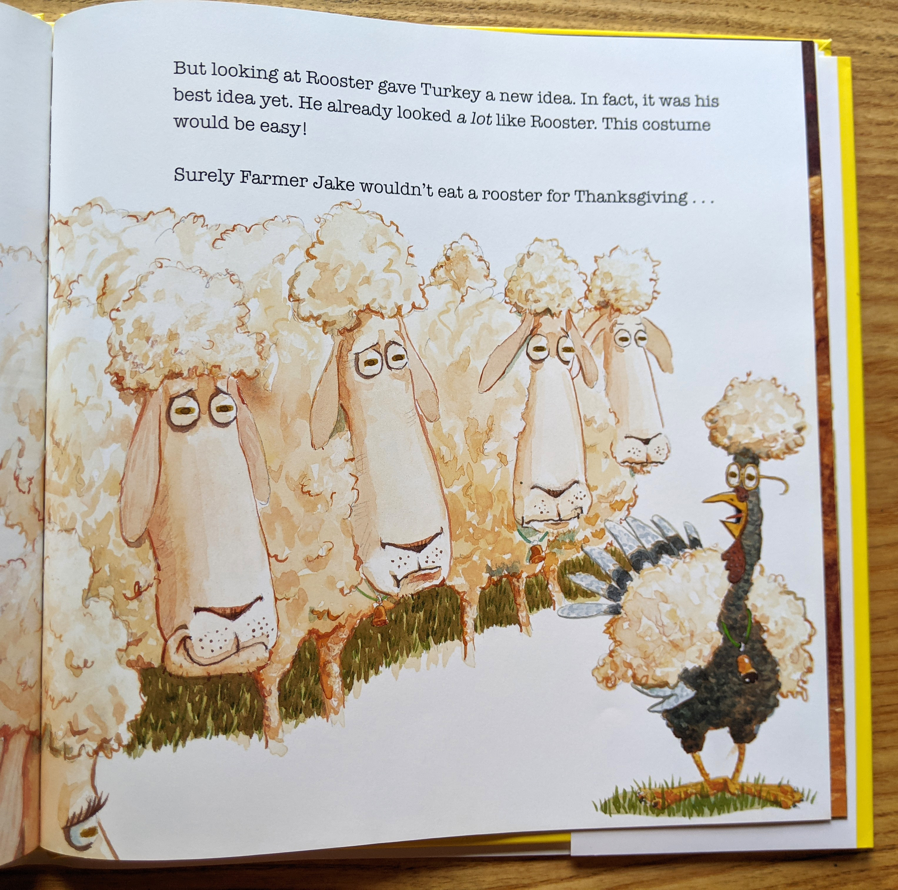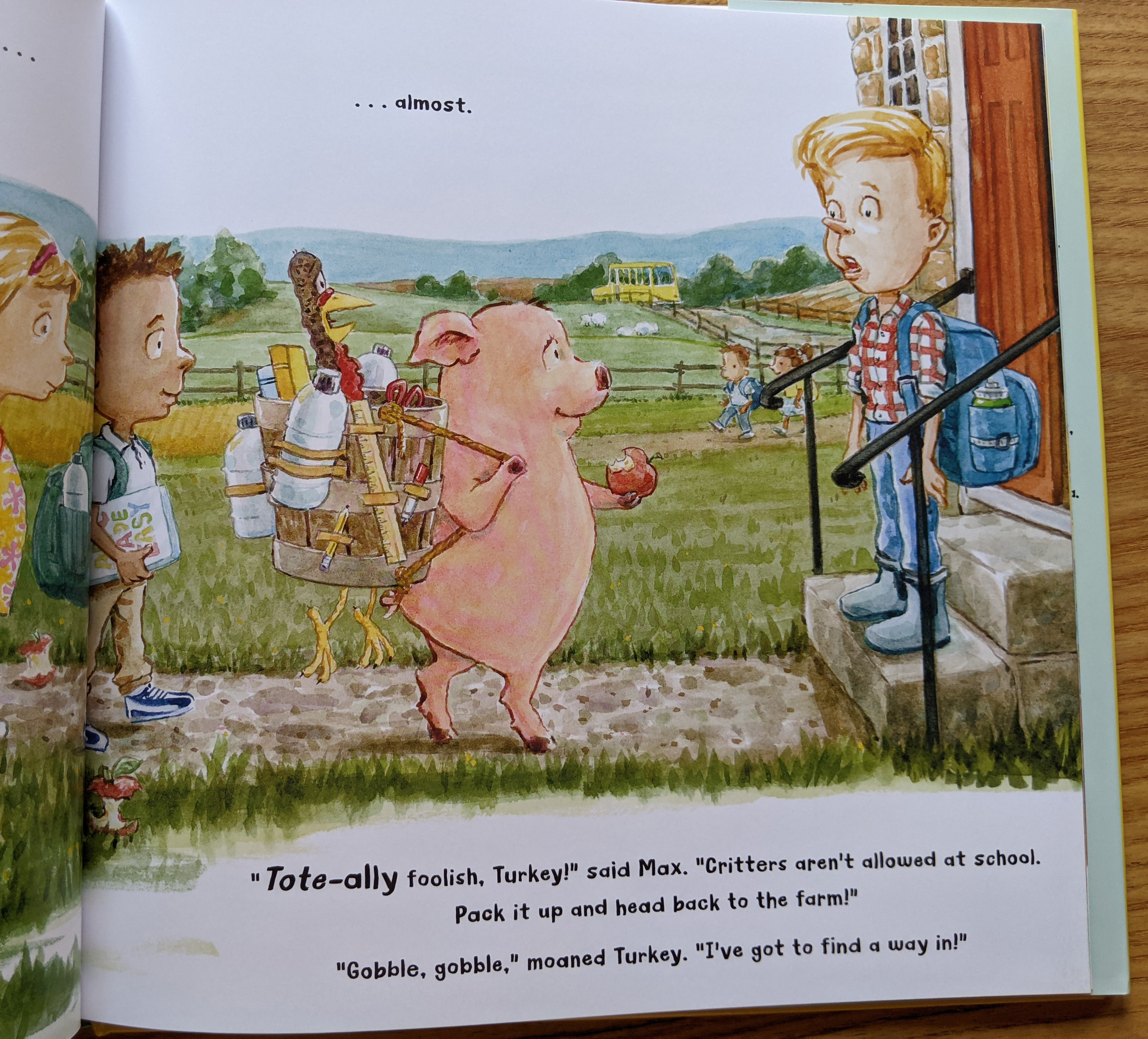 As an example of how that works, I’ll use the page in our new book Turkey Goes to School that reads: