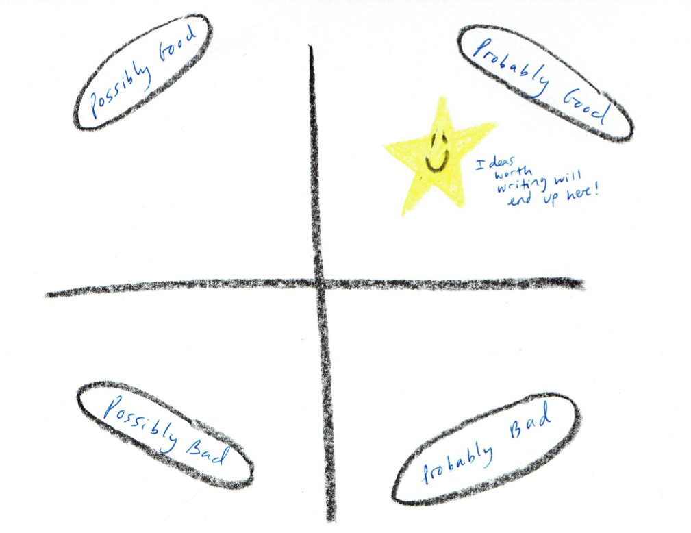 Start by putting all your ideas quickly into the “Possibly Good” or “Possibly Bad” boxes. Don’t think too hard. Most of your ideas will go into Possibly Good. But some will go into Possibly Bad.