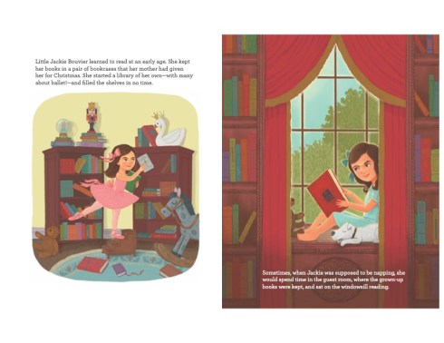 Then about five years ago, I thought about how reading and writing were a thread through her life. I knew that picture books bios were a great genre and began to work on this book. Emma Walton Hamilton once said, “I think you have to have a personal connection, and that’s what I am always looking to try to create: a personal way into a story.” I knew this was the story about Jackie that I wanted to tell.