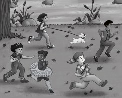 Illustrations in the best of picture books expand and enrich the text—and often offer a parallel story line. However, this isn’t the goal of illustrations in chapter books. Here, pictures are meant to support comprehension. Usually chapter books feature partial page or spot illustrations with occasional full-page art; black-and-white pen and ink drawings are common.