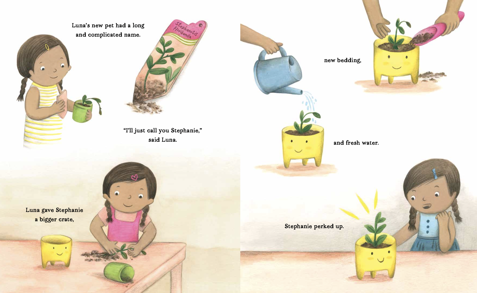 My kids and I love deadpan humor. What if I went all in and talked about the plant pet using animal terms? Animalpomorphizing . That way we are quickly on board with Luna’s perspective. A plant pot could be a cage or crate. Soil could be bedding. And of course, Luna’s plant should have a name! I love nicknames and clever abbreviations.