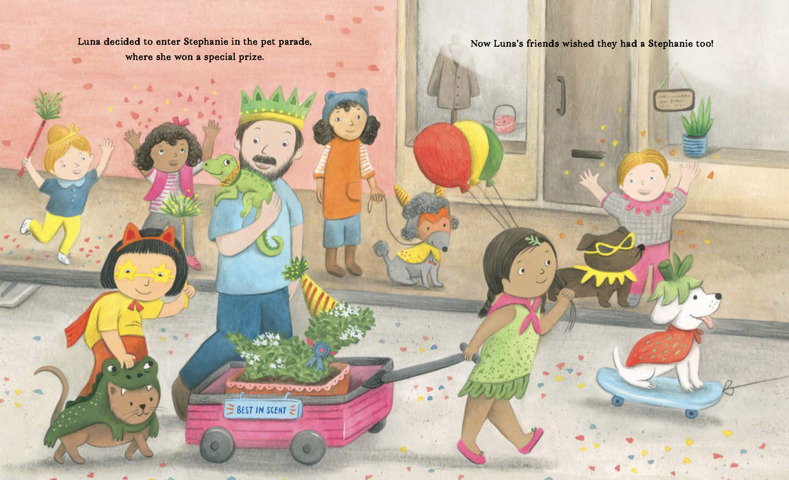 Let’s use my debut picture book, LUNA’S GREEN PET, as an example.