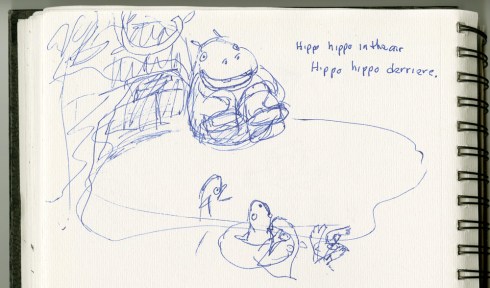 The beauty of ugly sketchbooks (see what I did there) is that they are just for you. To capture all your ideas or even just inklings of ideas in whatever form is easiest and quickest to mark down—a roughly-scribbled facial expression, a scene with stick people, a weird rhyme about a hippo’s butt. Get them all down on paper, however silly or embarrassing or unfunny or clichéd they are.