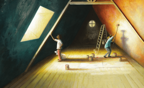 I think of the house as a child learning about the world. Children can experience all types of loss—divorce, the introduction of a step parent, or even the loss of one or both parents. The story shows that even though situations may change, love in still possible.