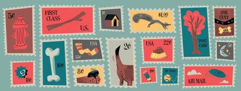 Here are the cover sketches I submitted to my editor/art director for CAN I BE YOUR DOG? It’s a story about a dog who writes letters to every house on Butternut street, in search of a home–so I knew I’d want the cover to involve DOG + MAIL.