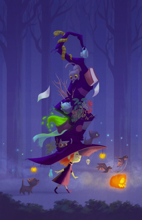 This is a Halloween story with witches and magic, so obviously dramatic lighting, colors and spooky elements are a must! And nighttime is the best setting to show these off.