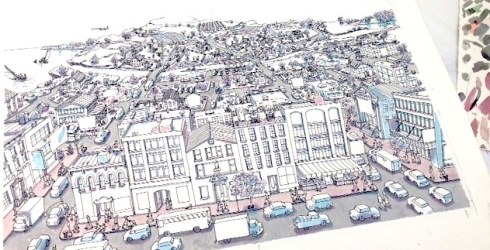 We were concerned about getting permissions to use images, but I discovered that the National Gallery of Art in Washington DC had just instituted an Open Access policy, so I used those images for the art in the book. The grand finale actually came easy—I just had fun figuring how to incorporate those mostly historic images into a contemporary city. Fragonard’s “Girl Reading” is a banner above the town library, Bellow’s boxers are used in a gym’s sign, Cassatt’s mother and child advertise a day care center.
