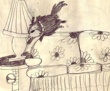 “This is a sketch from my story about going to Nana’s house. I’m entitling it ‘Two Kids in a Sandbox’ until I evolve the story more. I sketch, then I ink using a light table. I scan the piece into Photoshop where I color with a Wacom Tablet.”