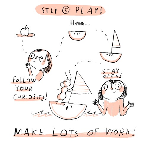 PLAY! Our minds are the most fluid in states of play. Find your play space. Follow your curiosity. This involves listening and WASTING TIME. It involves 90% of what you make NEVER seeing the light of day, so that you can unearth the 10% that is pure GOLD. Make, make, make, play, play, play.