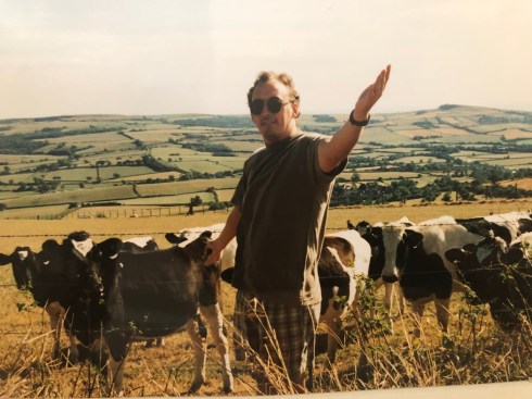 I’ve always been charmed by cows. They seem so sweet and curious to me. One of my favorite photos of my husband Mark was taken during a trip to England. I had wanted to get a picture of the beautiful scenery, but before we knew it, Mark was surrounded by cows. I joked, “Maybe they think you’re the farmer?” In the photo, I imagine the cows thinking, “Hey, what’s going on? Can we play?”