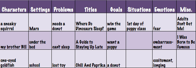 Now we have a list of components we can use to build a story. By creating your spreadsheet, you might see that you have a great character and interesting problem that you do not previously consider putting together. Your cookie-loving shark might be the perfect hero to free Mars of aliens.