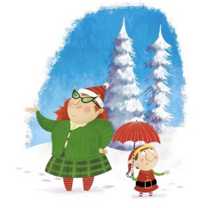 And though she doesn’t have a cover yet, this fall, look for Amazon/Two Lions to publish the hilarious adventure, MRS. CLAUS TAKES THE REINS, which follows Mrs. Claus as she takes over Christmas because Santa wakes up too sick for the gig. Here’s an illustration from the book: